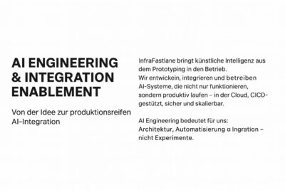 AI wird bei InfraFastlane nicht als Add-on behandelt, sondern als Teil der Infrastruktur:
